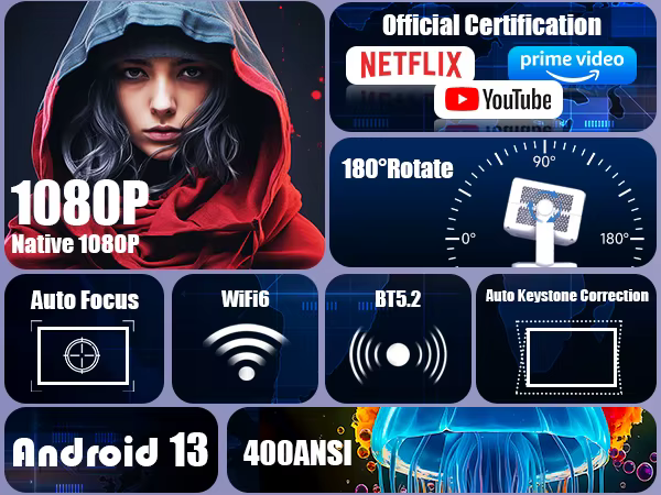 Full HD Home Theater Video Smart Android Google App Wireless Phone Portable Mini 4K Projector